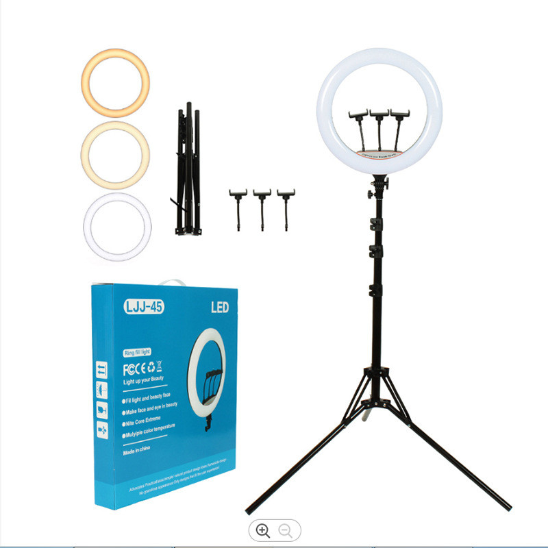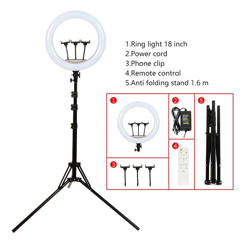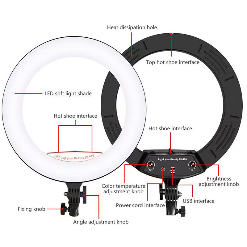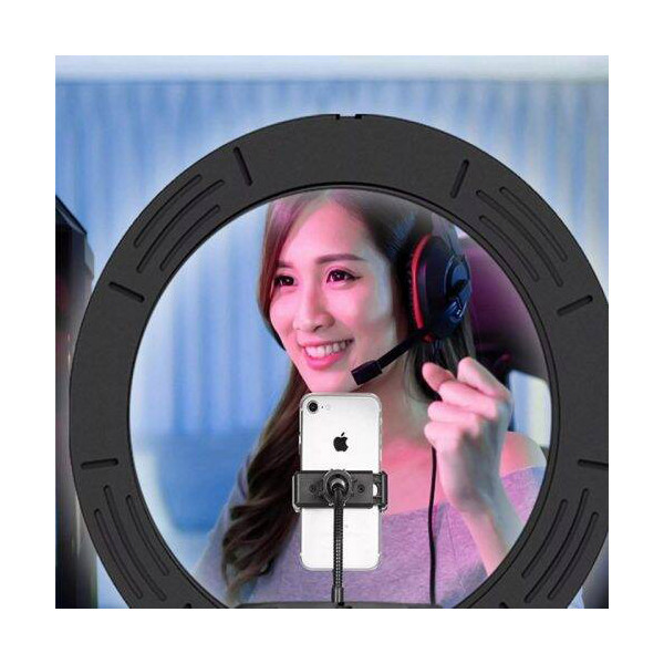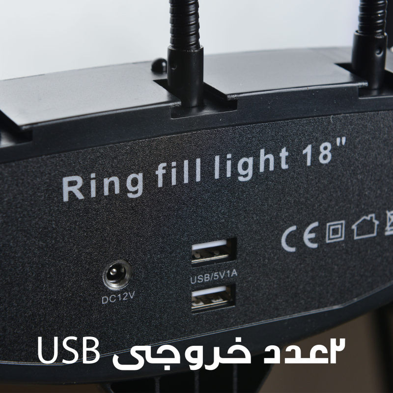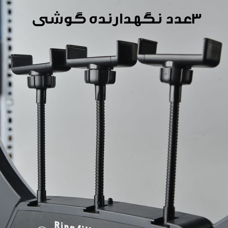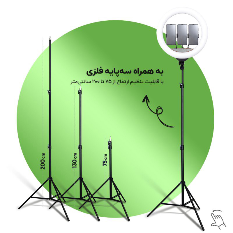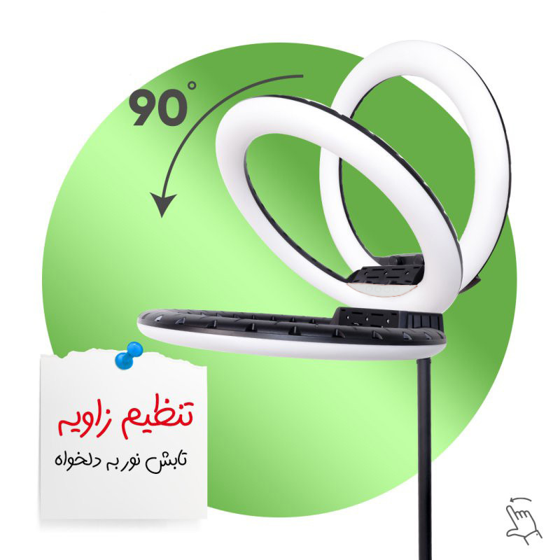 رینگ لایت بر خلاف باقی نورهای آتلیهای و عکاسی، نور یکدستی را تولید میکند. برای زمانهایی که نیاز به نورپردازی کامل و بدون سایه داشته باشیم از رینگ لایت مدلLED 45cm 18با سایز 45CM و18INCHمیتوان استفاده کرد. رینگ لایت یک نوع وسیلهی نورپردازی به صورت دایرهای است که نور رو به صورت نرم و از تمام زوایا به سوژه میتاباند. رینگلایت برای عکاسی پرتره، آرایشگاهها و بلاگرها کارایی بسیاری دارد. این مدل را میتوانید در 3 رنگ متفاوت یعنی یخی و زرد وئ همچنین میکس زرد و یخی تنظیم کرد. این مدل را میتوانید روی پایه قرار داده و از آن استفاده کنید. یکی دیگر از ویژگیهای این محصول قابلیت کم و زیاد کردن شدت نور است. میتوانید در محیطهایی که نور کمتری به سوژه میتابد، شدت نور رینگلایت را افزایش دهید. همچنین با پایه نگهدارنده ای که برای این رینگ لایت طراحی شده می توانید گوشی همراه خود را روی آن پایه قرار دهید و سپس پایه را در محل مشخص در وسط دایره لینگ لایت قرار داده و از عکس و فیلم های سلفی خود لذت بالایی ببرید.همچنین پایه ای که به همراه این کالا تقدیم مشتری می گردد قابلیت تنظیم تا ارتفاع 200 متر را دارد که دست کاربر را برای تصویر برداری از هر زاویه و ارتفاعی باز میگذارد .یکی از ویژگی های کاربردی این رینگ لایت دارابودن نگه دارنده3گوشی است