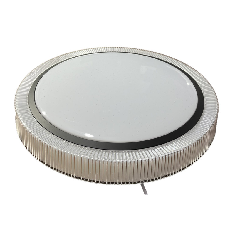 چراغ سقفی 72 وات گرد کریستالی مودی یک محصول لوکس و با طراحی بسیار زیبا جلوه خاصی به دکوراسیون منزل شما می بخشد . این محصول دارای بدنه فلزی بوده و نصب آن بسیار سریع و آسان می باشد . این چراغ سقفی کریستالی با نور سه رنگ تولید میشود که با هربار خاموش و روشن کردن کلید ، نور آن بین رنگهای آفتابی ، سفید ، یخی (طبیعی) تغییر میکند و توان روشنایی آن در هر نور به ترتیب (36w) ، (36w) ، (72w) است که توان بالایی برای روشنایی اماکن مختلف محسوب میشود . از مزایای این محصول نصب آسان بدون نیاز به تغییر در ساختار محل نصب (بدون برش) میباشد. بهرهنوری بالا و طول عمر بسیار زیاد از مزایای دیگر آن و راهکاری کارآمد برای افزایش بهرهوری سیستمهای روشنایی است.