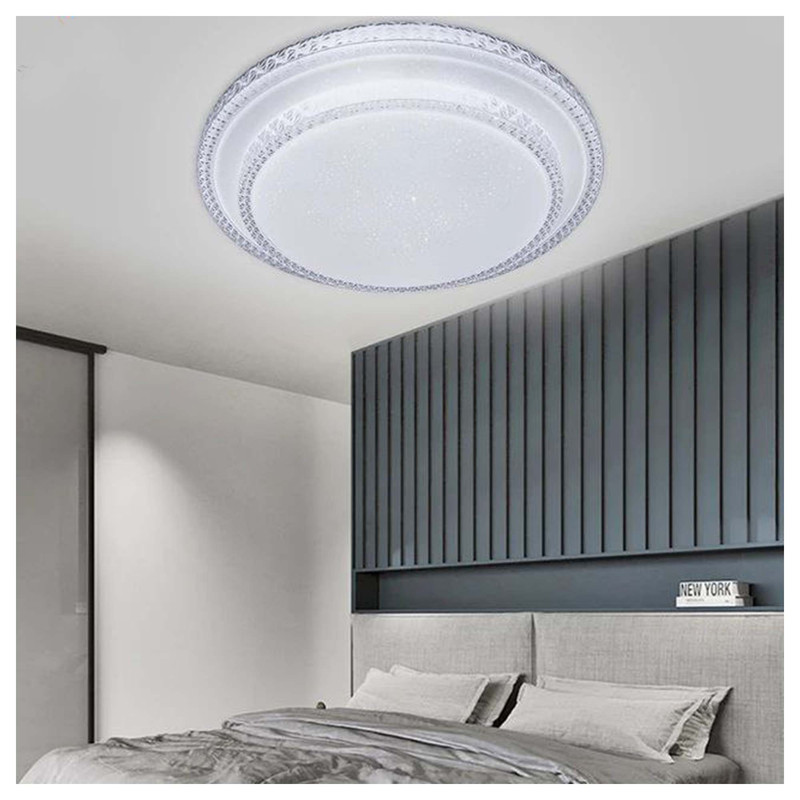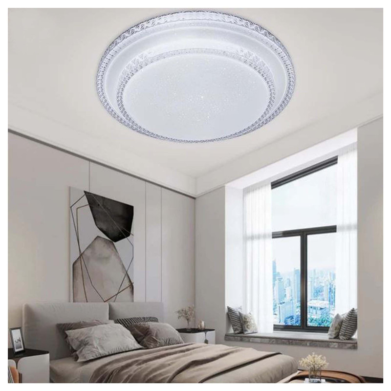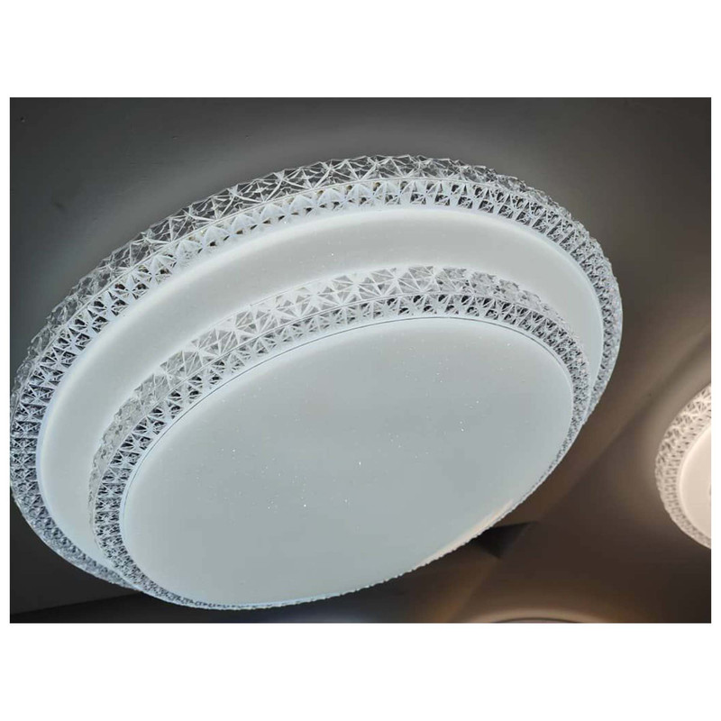سایر توضیحات : چراغ سقفی دارای سه رنگ نور مختلف می باشد که با هربار خاموش و روشن کردن کلید، نور آن از بین رنگ‌های آفتابی ، سفید ، یخی(طبیعی) تغییر می‌کند .و دارای عمر مفید 30000 ساعت و روشنایی 5000 لومن می باشد.