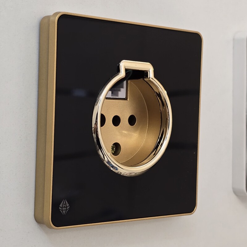 پریز تلفن دو منظوره اسیا مدل یاقوت مشکی طلایی