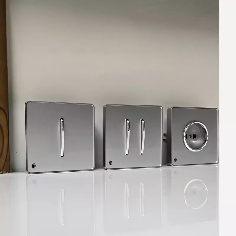کلید و پریز مدل یاقوت رنگ نقره ای اسیا الکتریک تک پل / دوپل / سه پل / .... 5 سال ضمانت جنس پلکسی مغزی برنجی نصب اسان زیبا و مینیمال