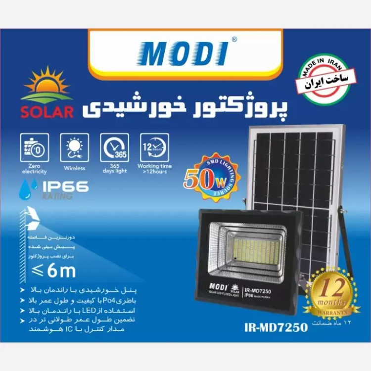 پروژکتور 50 وات خورشیدی مودی(پس کرایه)