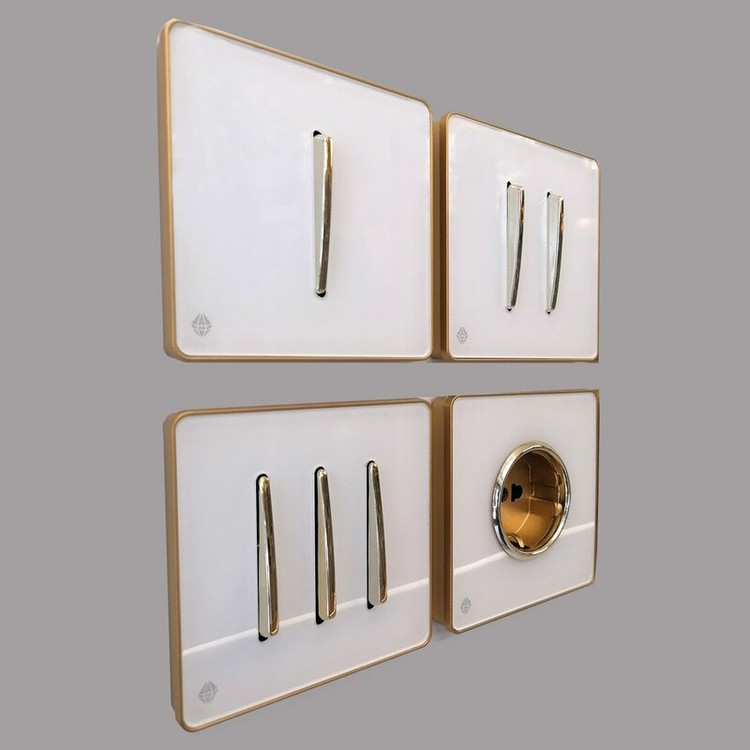 کلید پریز آسیا الکتریک کلید تک پل مدل یاقوت سفید طلایی