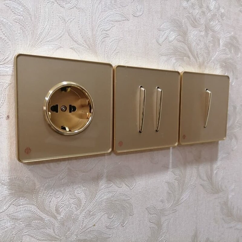 کلید پریز آسیا الکتریک کلید تک پل مدل یاقوت بژ طلایی