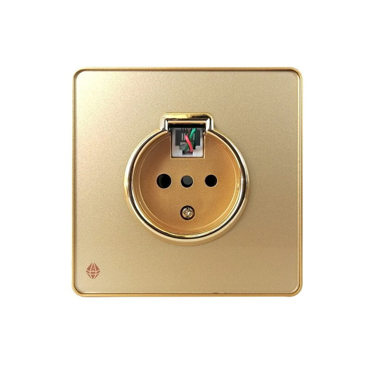 کلید پریز آسیا الکتریک پریز تلفن دومنظوره مدل یاقوت بژ طلایی