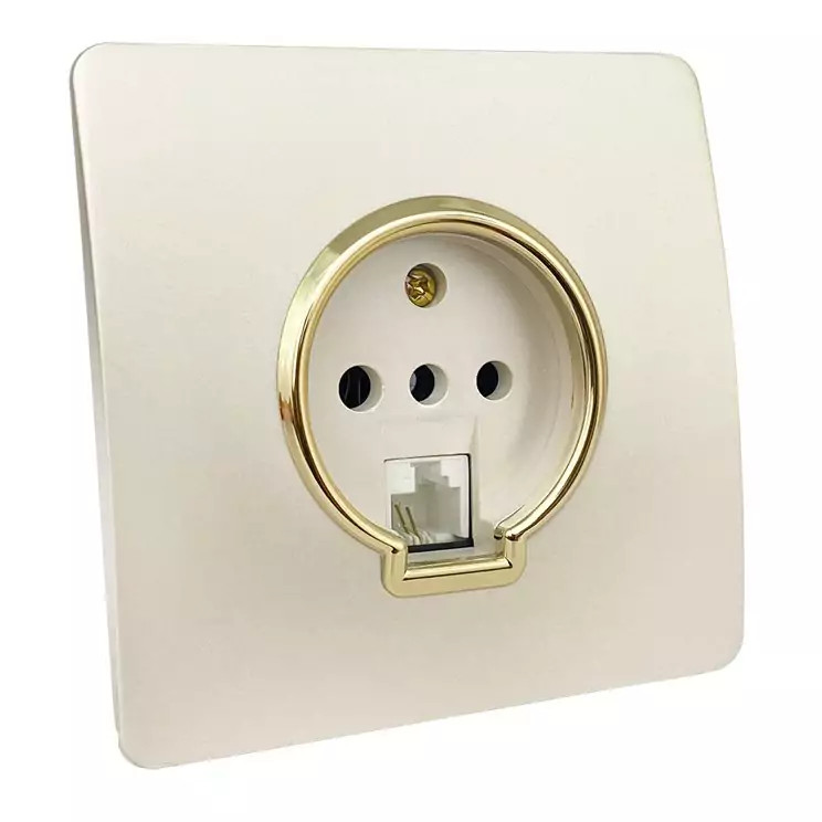 کلید پریز آسیا الکتریک پریز تلفن دوکاره مدل کریستال صدفی-طلایی