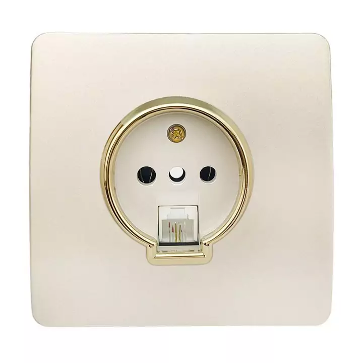 کلید پریز آسیا الکتریک پریز تلفن دوکاره مدل کریستال صدفی-طلایی