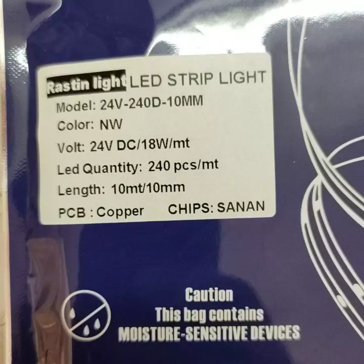 ریسه نواری 24 ولت تراکم 240 18 وات بر متر رول 10 متری