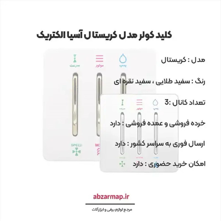 کلید کولر مدل کریستال سفید آسیا الکتریک