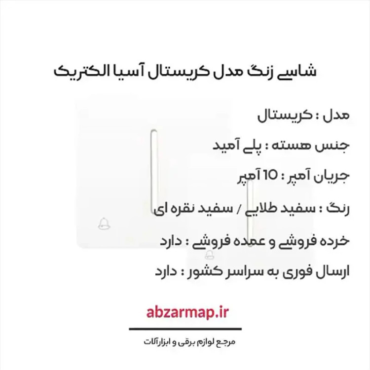 شاسی زنگ مدل کریستال سفید آسیا الکتریک