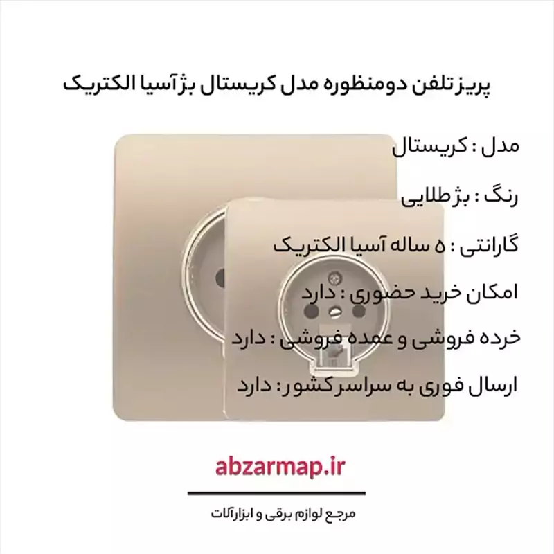 پریز تلفن دومنظوره مدل کریستال بژ طلایی آسیا الکتریک