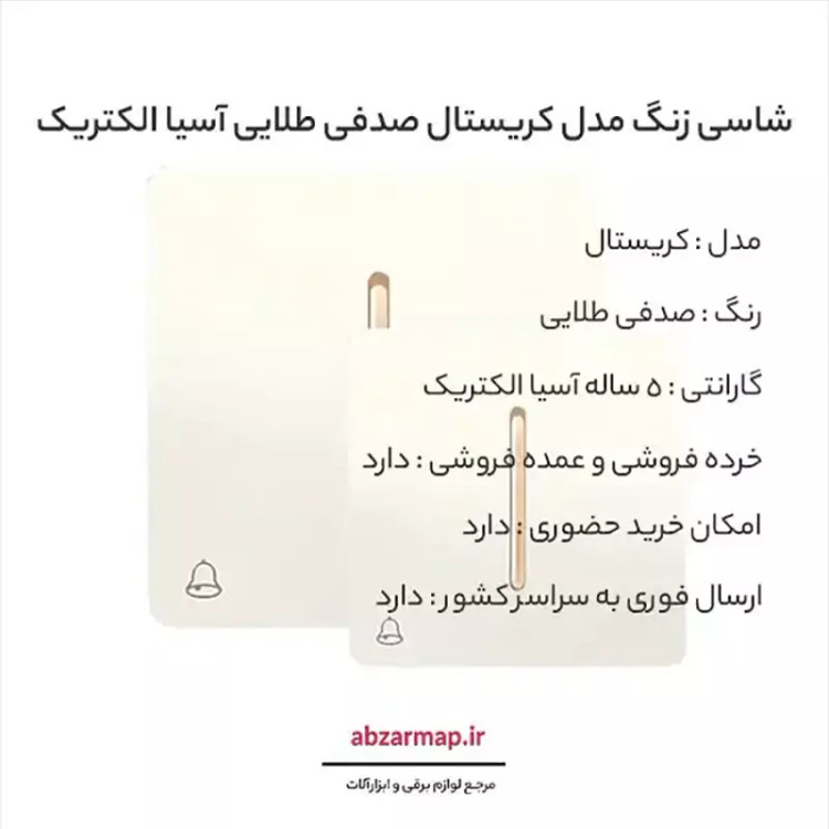 شاسی زنگ مدل کریستال صدفی طلایی آسیا الکتریک