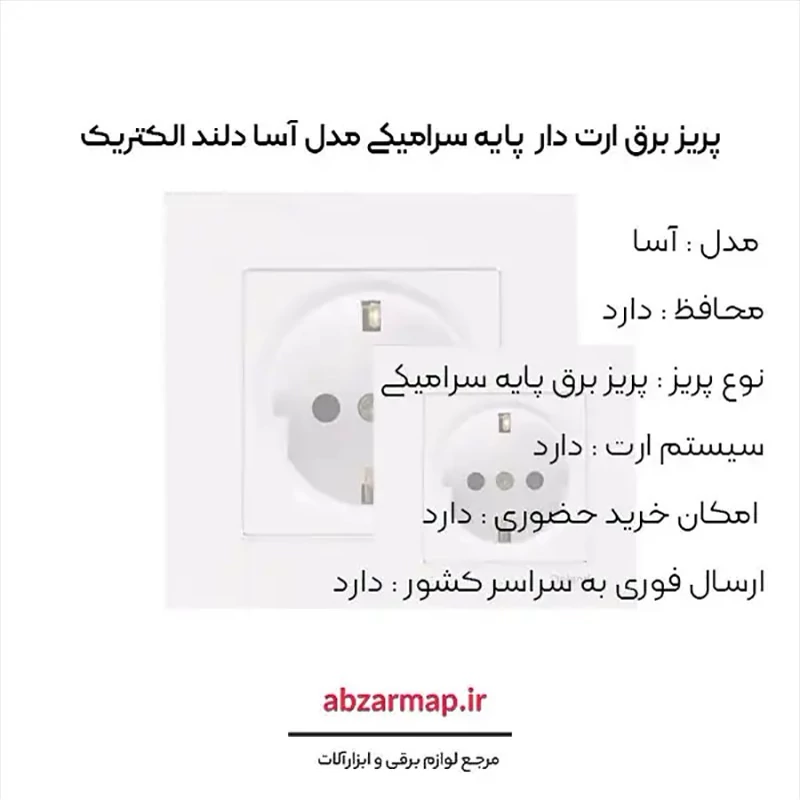 پریز برق ارت دار پایه سرامیکی دلند مدل آسا