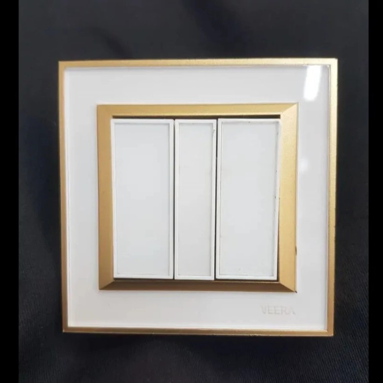 کلید سه پل تمام گلس ویرا مدل پرو کلاسیک سفید طلایی از محصولات جدید شرکت ویرا الکتریک میباشد طراحی جالب و شکیل این مدل زیبایی خاصی به محیط اجرا میدهد