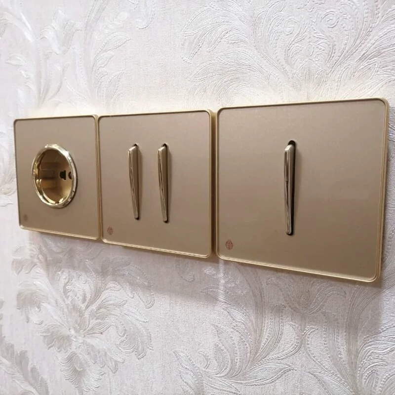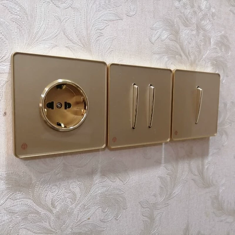 کلید پریز آسیا الکتریک کلید تبدیل مدل یاقوت بژ طلایی