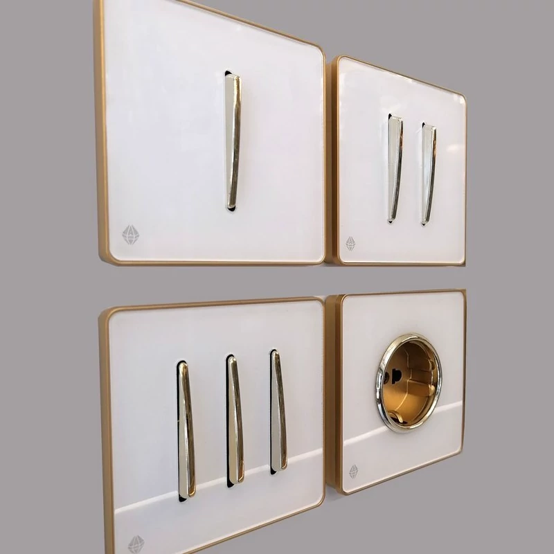 کلید پریز آسیا الکتریک کلید کولر مدل یاقوت سفید طلایی