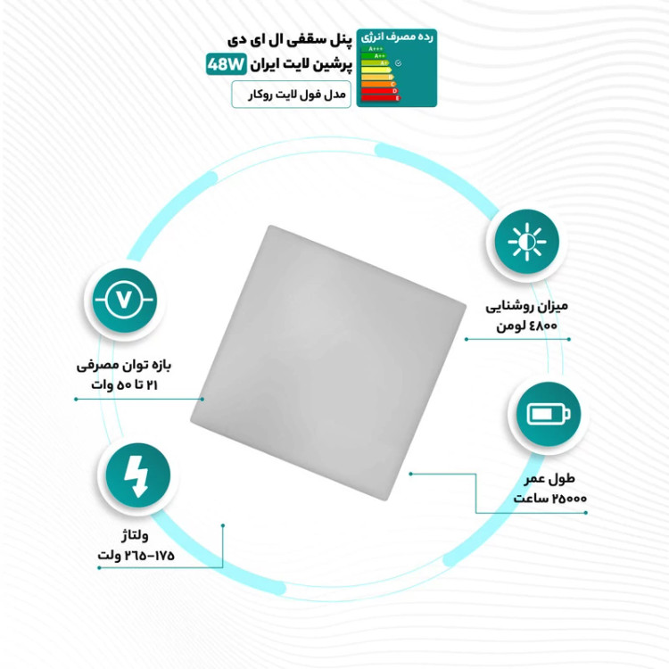 پنل سقفی ال ای دی 48 وات پرشین لایت ایران مدل فول لایت توکار